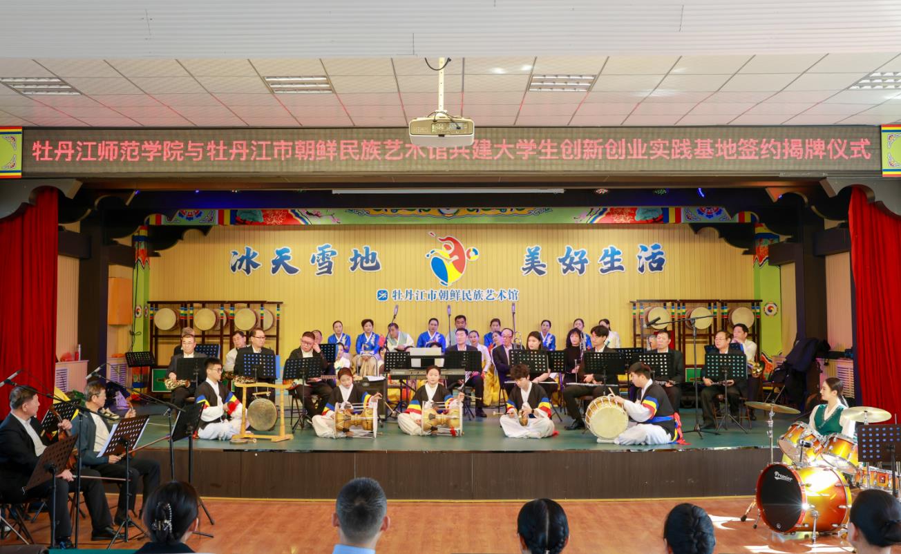 随后,张冰与王威共同为“大学生创新创业实践基地”揭牌。音乐与舞蹈学院院长尹茂源与牡丹江市朝鲜民族艺术馆馆长白莹签订了合作协议。音乐与舞蹈学院副院长刘海婴、学生赵杨羽墨分别代表师生发言。