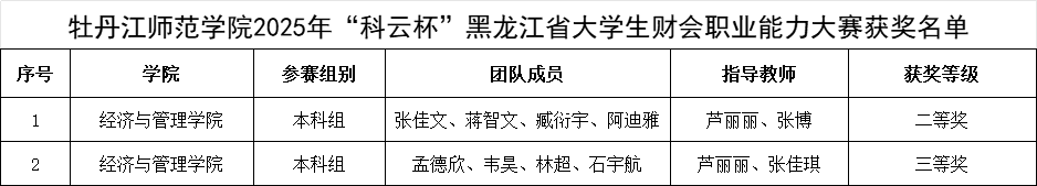 喜报!我校学生在2025年“科云杯”黑龙江省大学生财会职业能力大赛中喜获佳绩